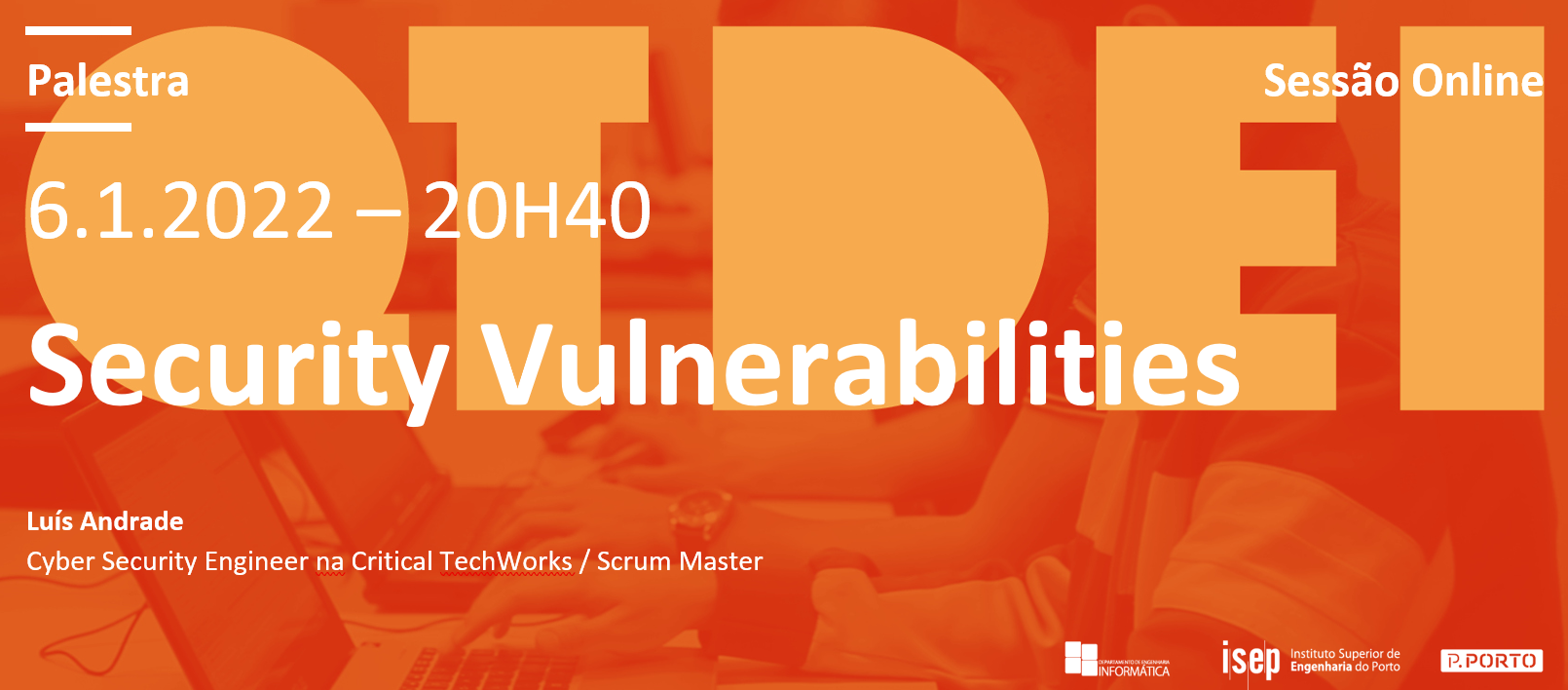 No dia 6 de janeiro (quinta-feira), às 20H40, realizar-se-á a Palestra – "Security Vulnerabilities".