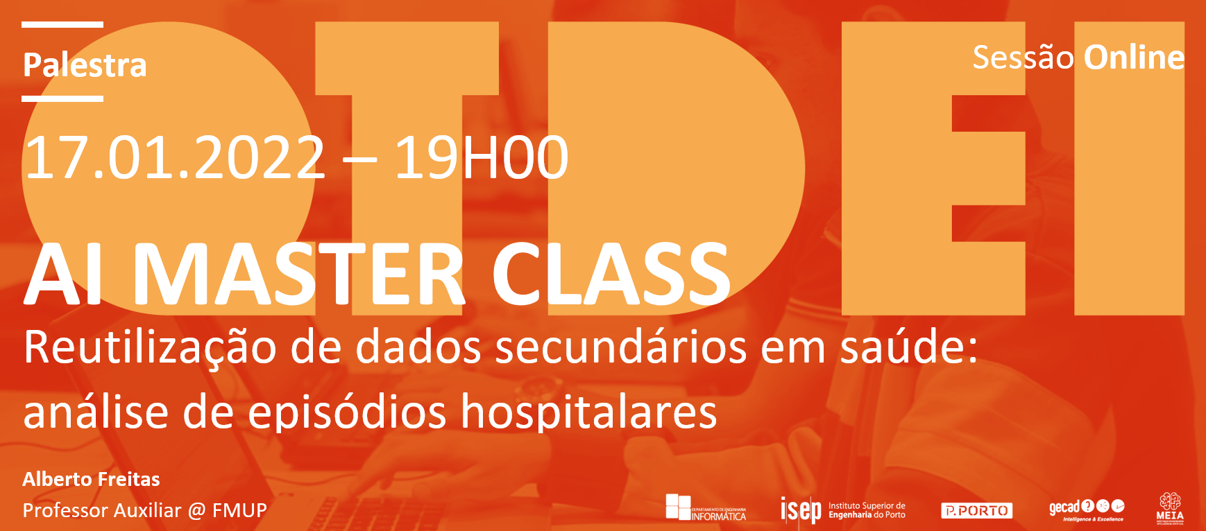 No dia 17 de janeiro (segunda-feira), às 19H00, o DEI convida à participação em mais uma AI Master Class, desta vez sobre o tema “Reutilização de dados secundários em saúde - análise de episódios hospitalares”.