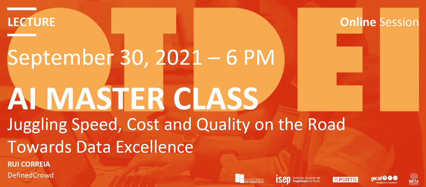 On September 30, at 6 pm, the AI Master Class ”Juggling Speed, Cost and Quality on the Road Towards Data Excellence” will be held.