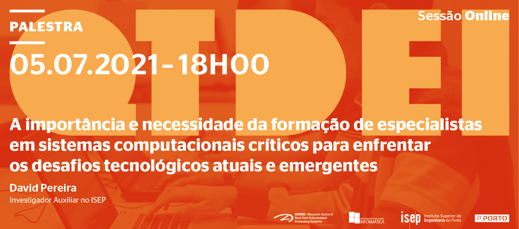 No próximo dia 5 de Julho, às 18h00m, vai realizar-se a Palestra – "A importância e necessidade da formação de especialistas em sistemas computacionais críticos para enfrentar os desafios tecnológicos atuais e emergentes."
