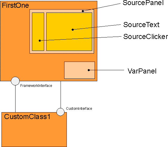 //FirstOne is our main Applet class //extends Applet means that is a sub-class of Applet like every Applet. The browser only knows how to use Applet objects, by subclassing the Applet class we let the browser use our class implementing new behaviour to the standard Applet (that does nothing). //implements FrameworkInterface means that we will define in this class all the methods defined in the FrameworkInterface (see below). In this way one class can use our class like a FrameworkInterface and be sure that the methods that are defined in it are available.
