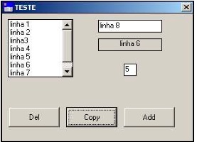 c) Quando se premir o botão “Del”, será eliminada da listbox a linha cuja posição estiver referida no 2º campo de edição.