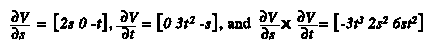 which are vectors tangent to the surface in the s and t directions. The cross product