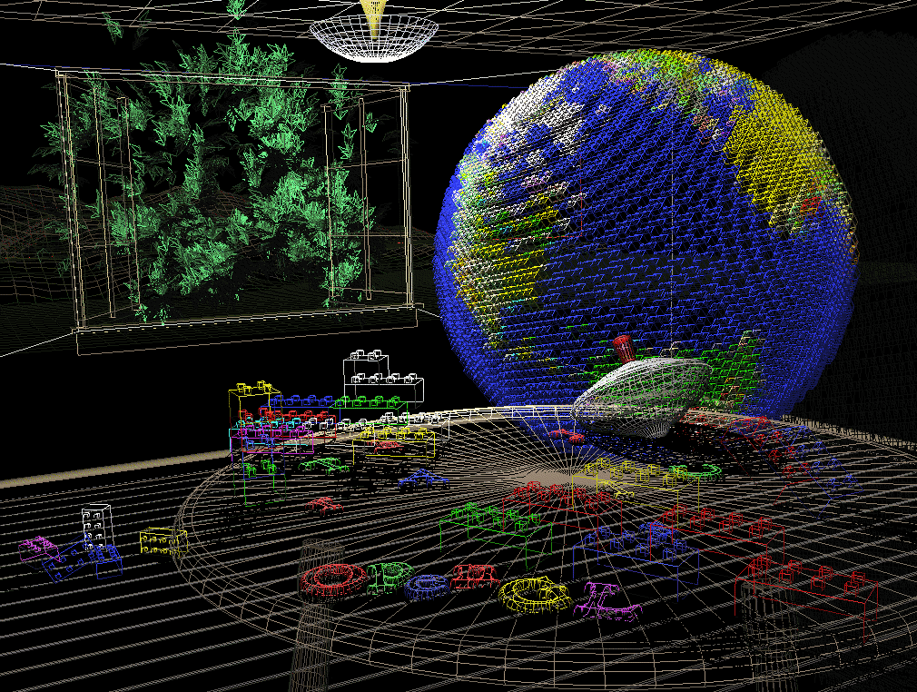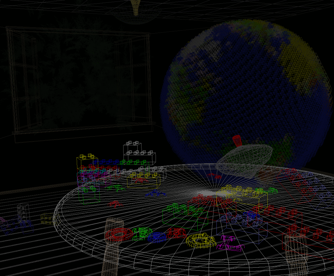 The scene from the cover of this book, with the objects rendered as wireframe models. See Chapter 2.