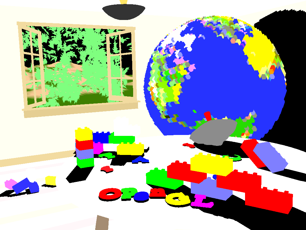 The scene drawn with flat-shaded polygons (a single color for each filled polygon). See Chapter 4.
