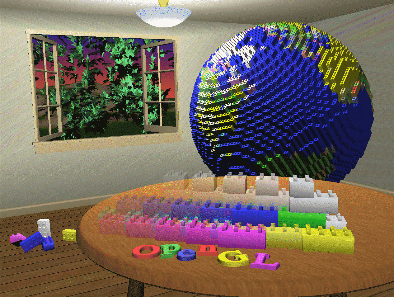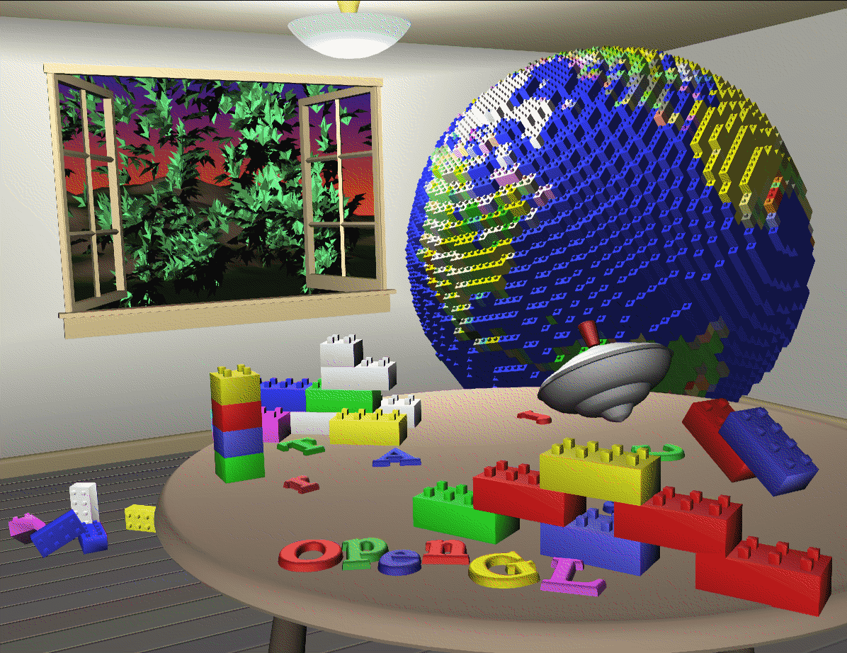 The scene drawn with one of the objects motion-blurred. The accumulation buffer is used to compose the sequence of images needed to blur the moving object. See Chapter 10.