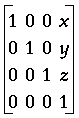 glTranslate moves the coordinate system origin to the point specified by (x,y,z). The translation vector is used to compute a 4×4 translation matrix: