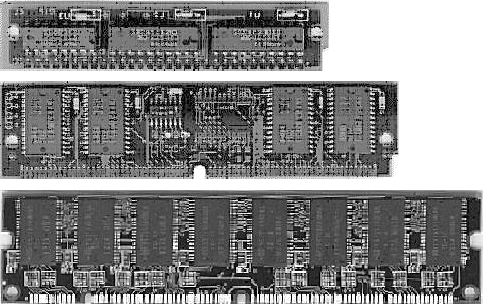 Figura 4.3 - SIMM's de 30, 72 e 168 conectores [fonte]